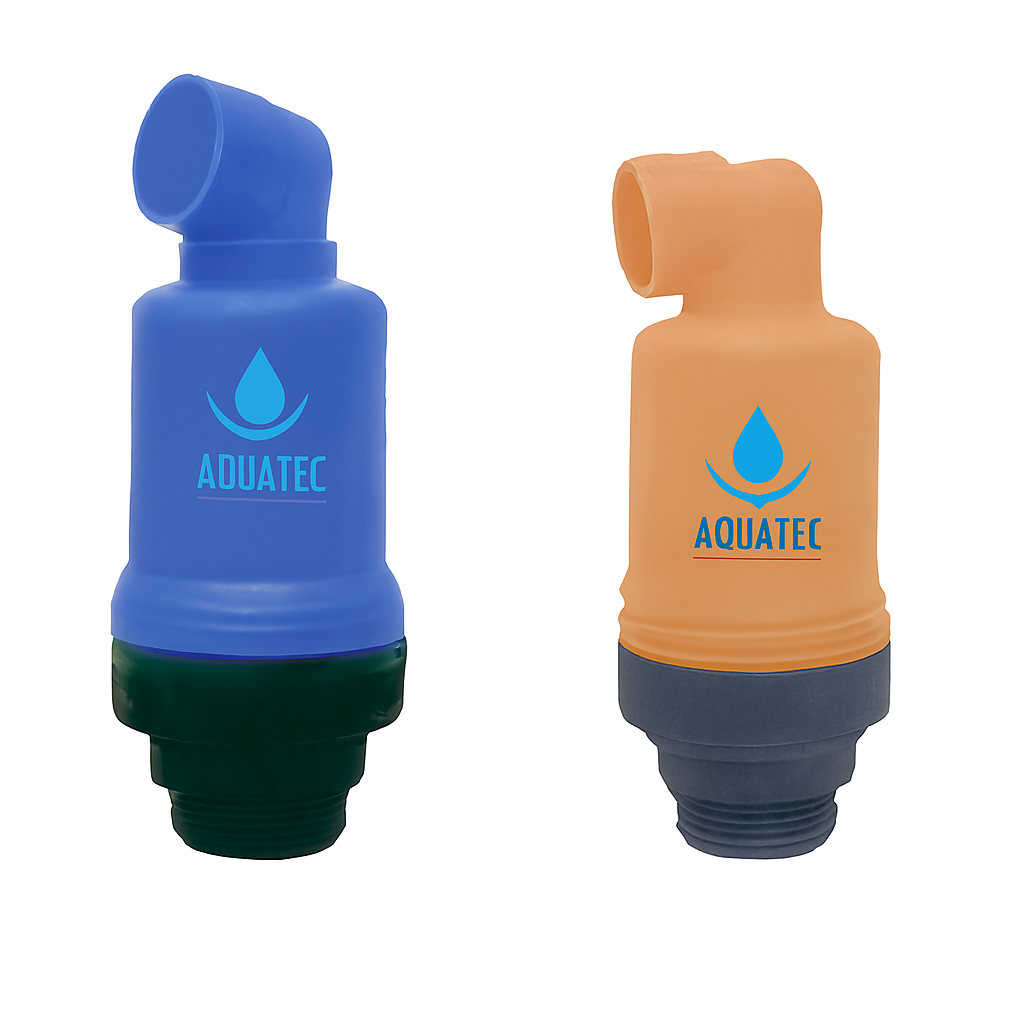 Las válvulas de aire de 2” Airlutec están diseñadas para sistemas hidráulicos de gran capacidad, permitiendo la expulsión eficiente del aire durante el llenado y la admisión controlada durante el vaciado. Fabricadas en plástico técnico de alta resistencia, estas válvulas están disponibles en dos versiones: